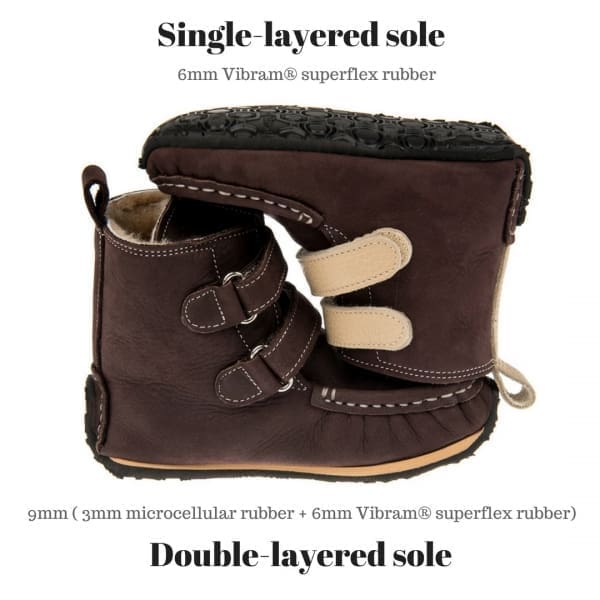 Modell YETI tilbyr komfort uten å presse sammen barnets følsomme små føtter. Alle kanter er skjult inn eller peker utover, slikt at skoene er behagelige å ha på.