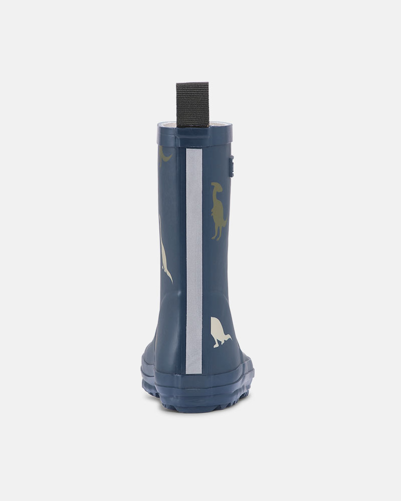 Gummistøvlene laget av myk naturgummi som sitter optimalt på foten og med refleksdetaljer bak som sørger for at barnet er synlig i mørkt vær.